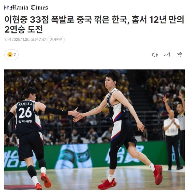 韩国媒体《狂热时报》展望中国VS韩国的世预赛二番战:12年来首次挑战二连胜中国队,李贤重首战拿到33分。