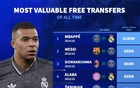 德转列自由转会身价前10:姆巴佩1.8亿欧第1,梅西8000万第2
